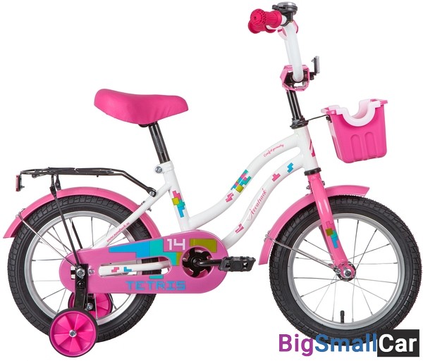 Велосипед NOVATRACK 14" TETRIS белый, тормоз нож, крылья цвет, багажник, корзина, полная защ.цепи