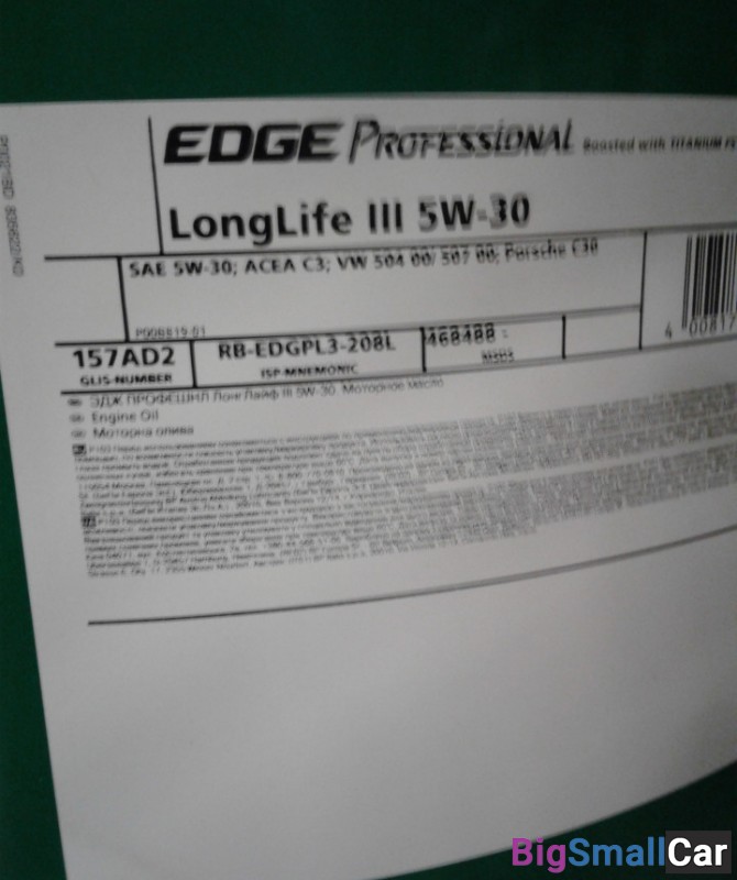 Масло моторное Castrol EDGE LongLife3 5W30 208л
